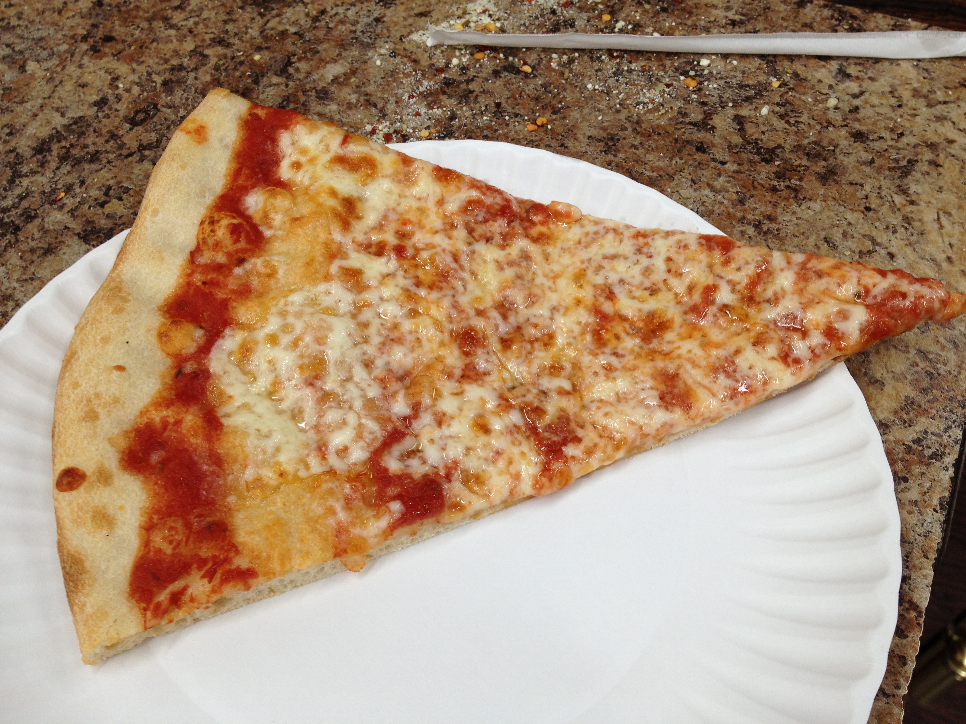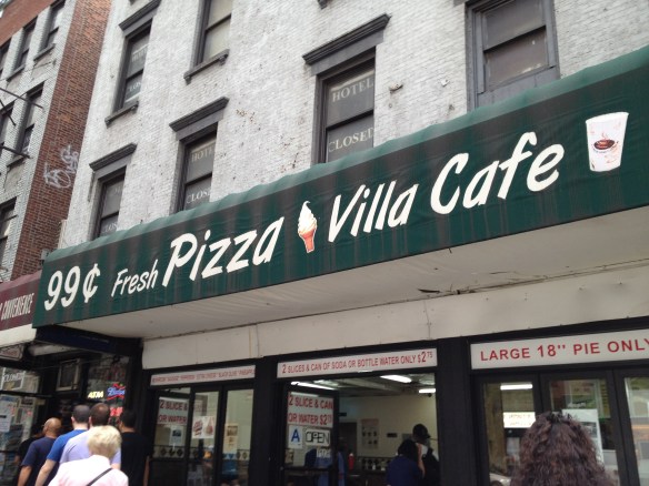 Wow! I could hardly believe my eyes! 99-cent pizza! What could be better than that??? I began to feel grateful again. I dove in there like a fox into a egg basket. And this is what I got: