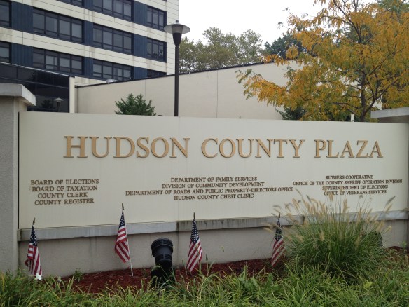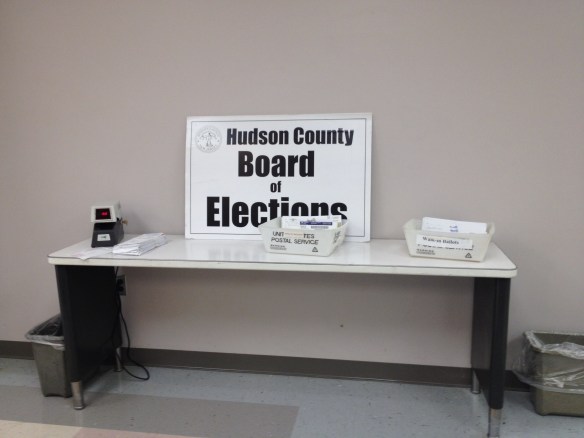Usually, casting a ballot is easy and within walking distance. But today I had to drive to the County Clerk’s office in Jersey City, where I had to go through a metal detector (creepy).Then I had to print my name in a book, sign it and note the exact time of my arrival (creepier). Then I got into an elevator with a directory that looked like it was in a foreign language except for one destination: Creepiest!