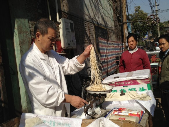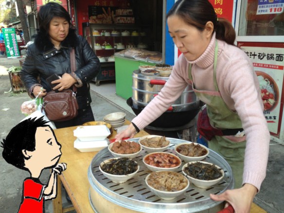 KAIFENG –31 October 2012 — Kaifeng in the morning is not as scary as it is at night. As soon as I got up, I went out looking for a hot bowl of jo, rice porridge. And this is what I found: