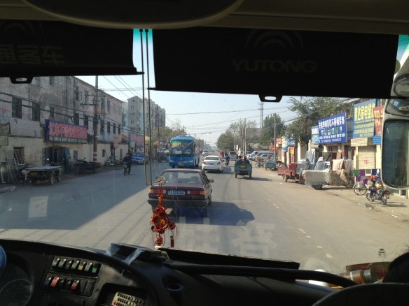 Then someone in a uniform appeared. “Where’s the bus to Dengfeng?” I asked. He looked at my ticket, tore it, took my bag and waved for a bus to stop that was already pulling out of the lot.